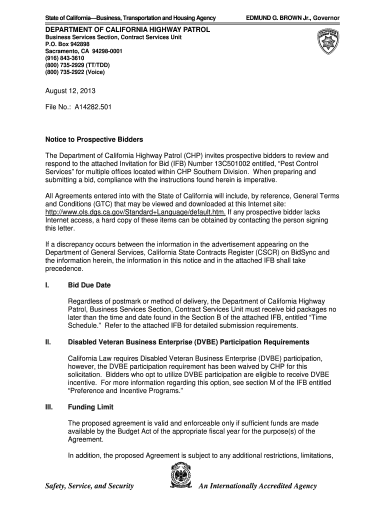 State of CaliforniaBusiness, Transportation and Housing AgencyEDMUND G. BROWN Jr., GovernorDEPARTMENT OF CALIFORNIA HIGHWAY PATROL