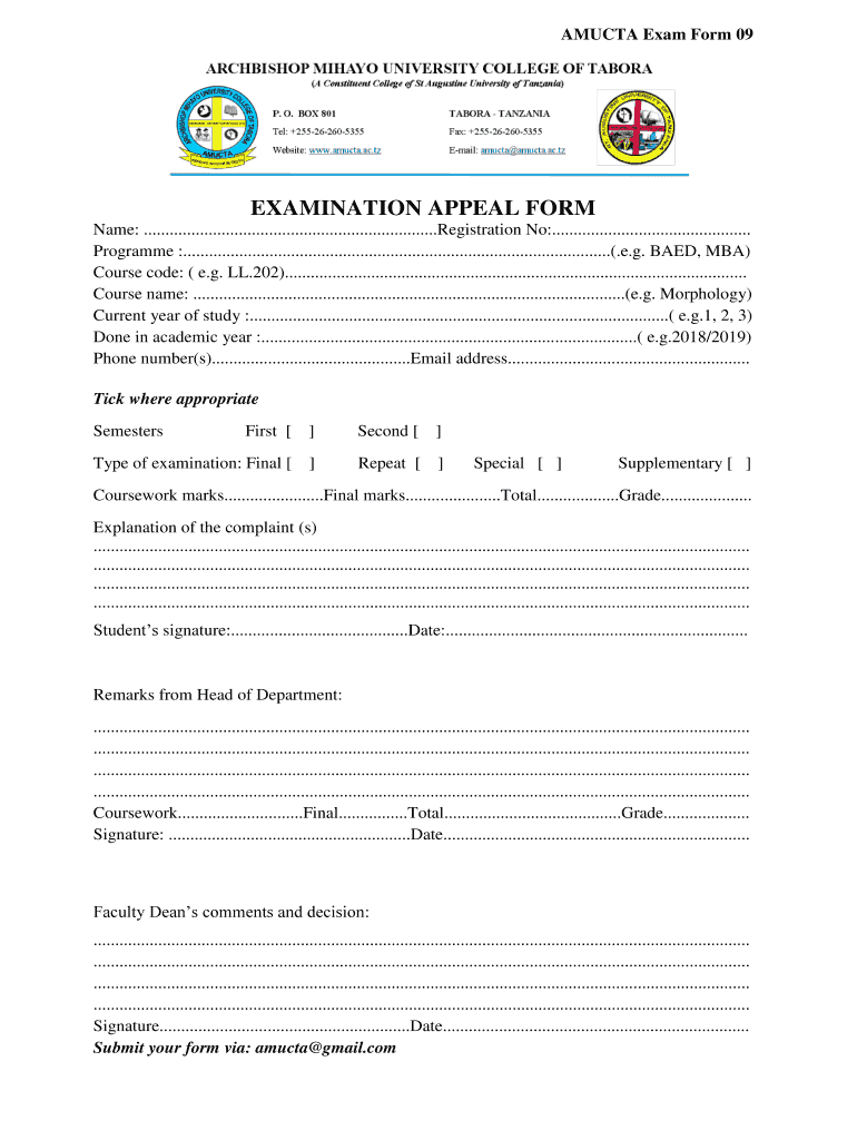 AMU CTA Exam Form 09EXAMINATION APPEAL FORM