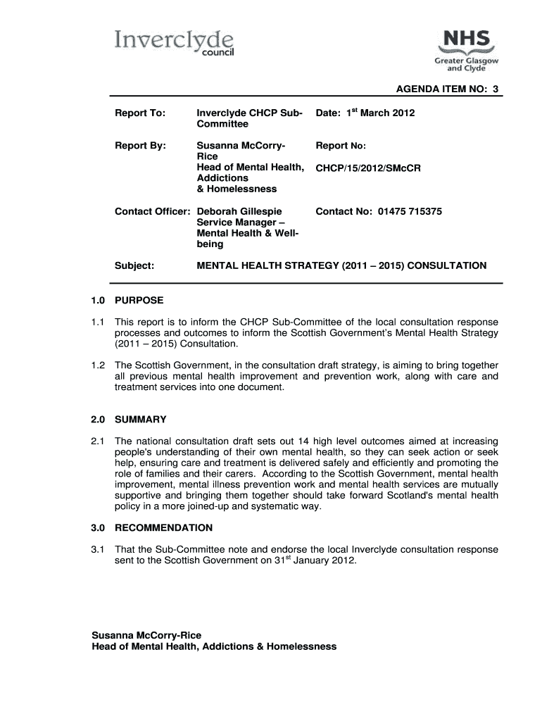 Get the free AGENDA ITEM NO: 10 Report To: Inverclyde Integration Joint ...