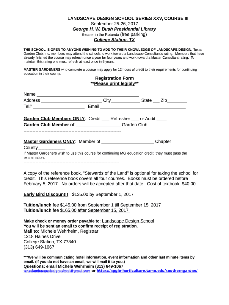 Get the free Landscape Design School Series XXIV, Course III, September 21 ... - aggie-horticultu...