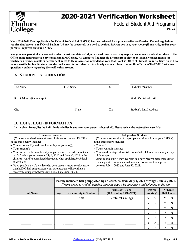 20202021 Verification Worksheet