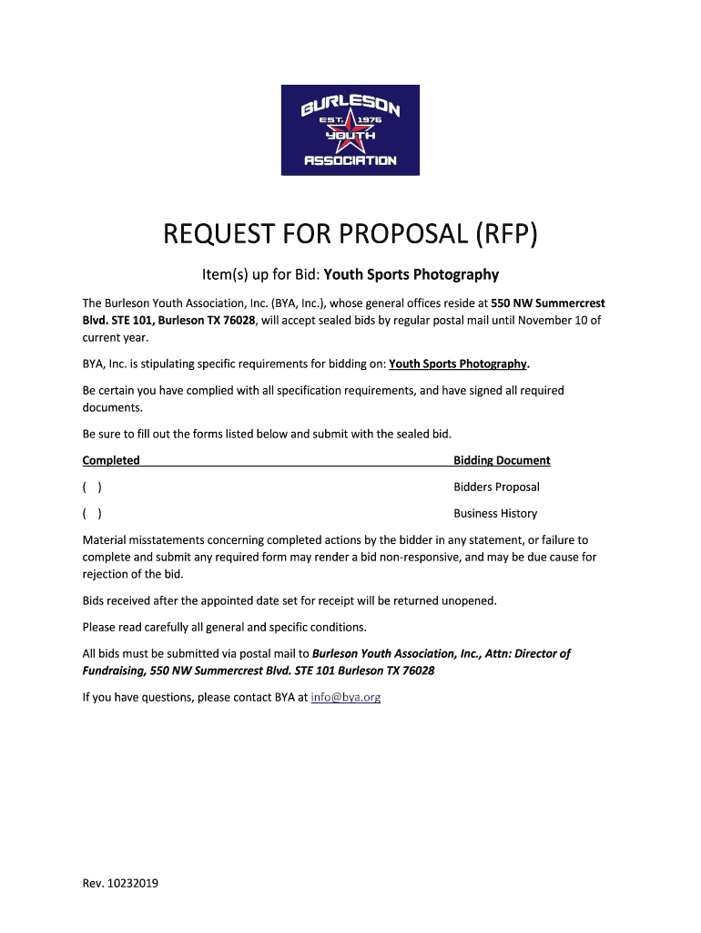 Get the free request for proposal (rfp) - Burleson Youth Association