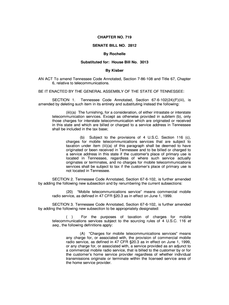 AN ACT To amend Tennessee Code Annotated, Section 786108 and Title 67, Chapter