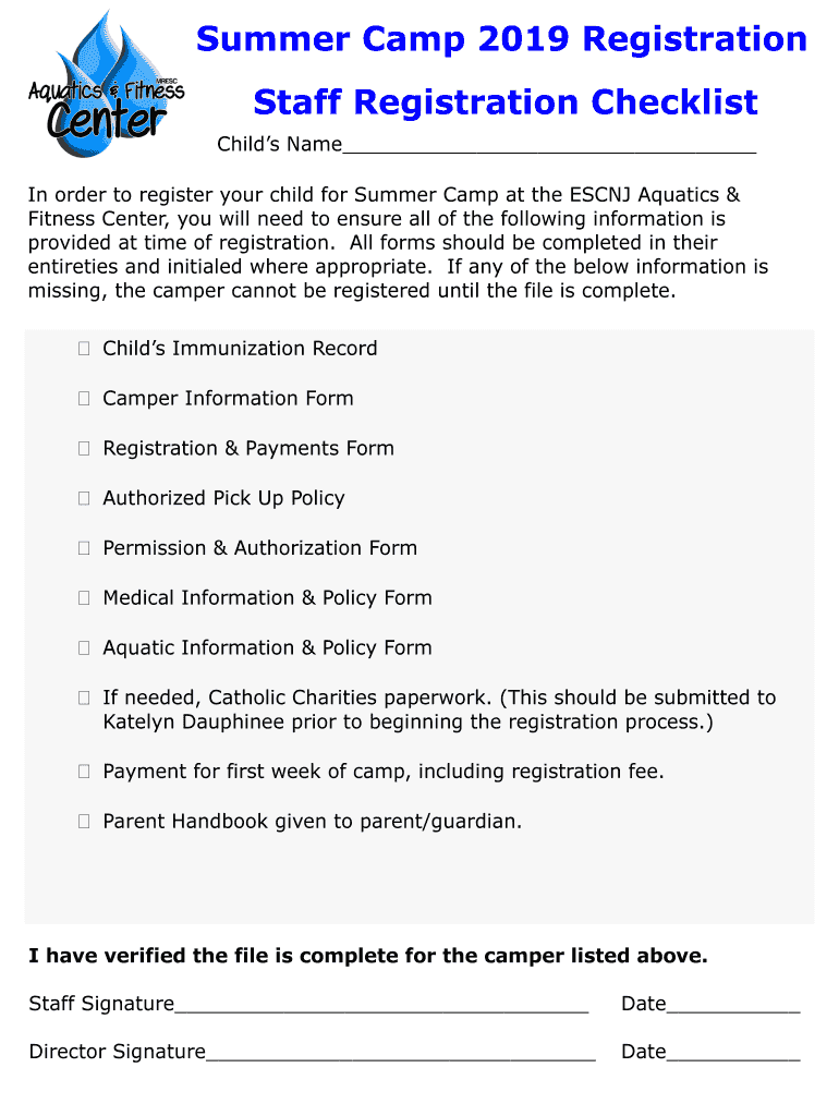 In order to register your child for Summer Camp at the ES CNJ Aquatics &