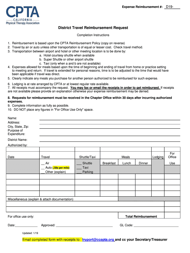 Expense Reimbursement #:D19District Travel Reimbursement Request