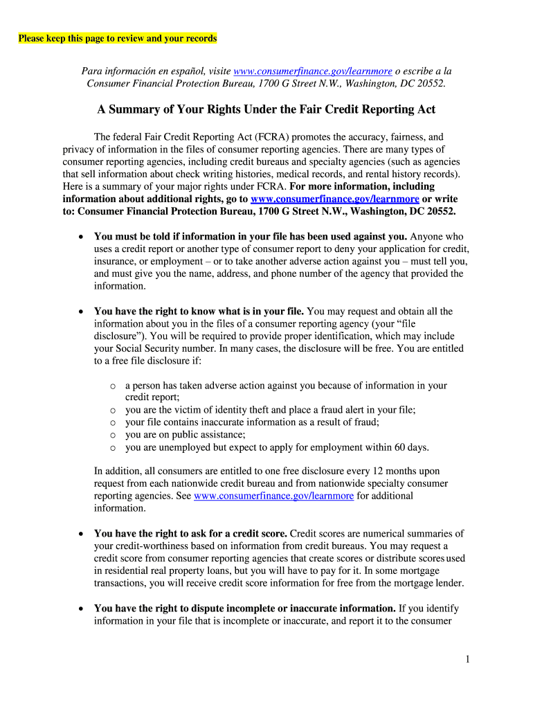 Get the free A Summary of Your Rights Under the Fair Credit ... - CFPB