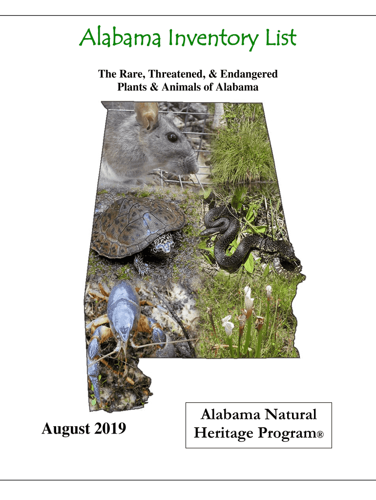 Alabama Inventory List The Rare, Threatened, & Endangered Plants & Animals of Alabama August 2019Alabama Natural Heritage Programmable OF CONTENTS ALABAMA NATURAL HERITAGE PROGRAM ...........................................................................