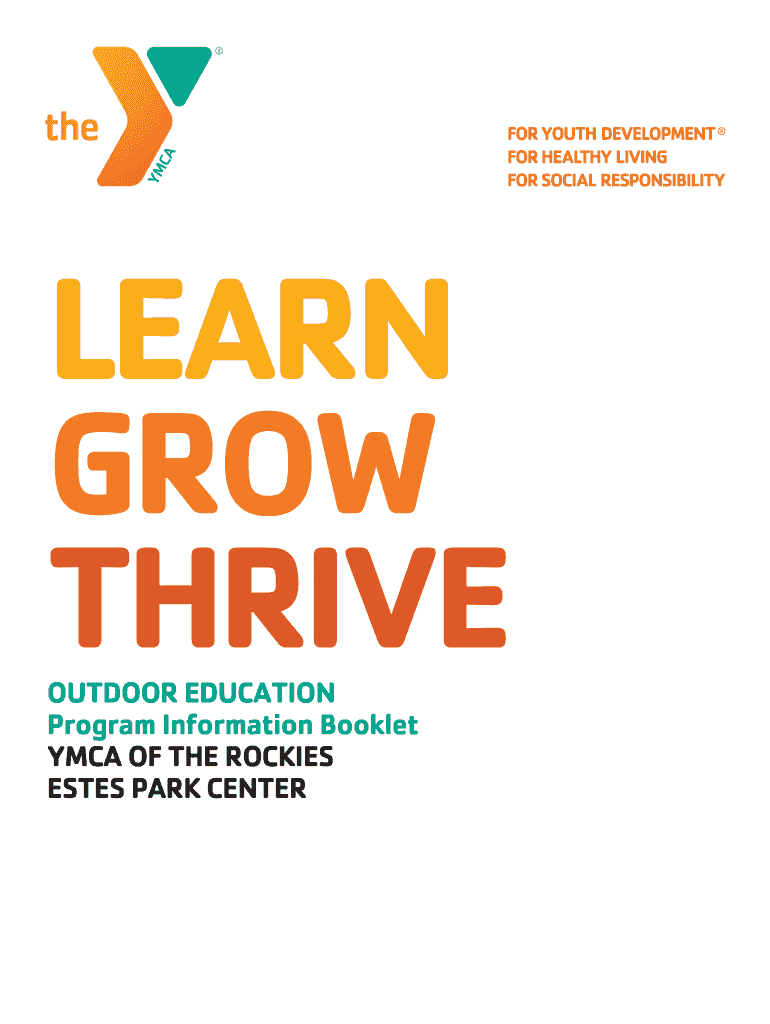 LEARN To grow THRIVE OUTDOOR EDUCATION Program Information Booklet YMCA OF THE ROCKIES ESTES PARK CENTERDISCOVER THE Y The YMCA of the Rockies boasts 860 acres of educational playground. The property