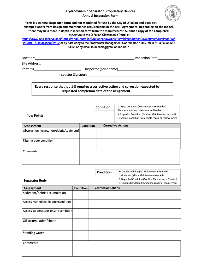 Get the free Hydrodynamic separator annual inspection form - City of O ...