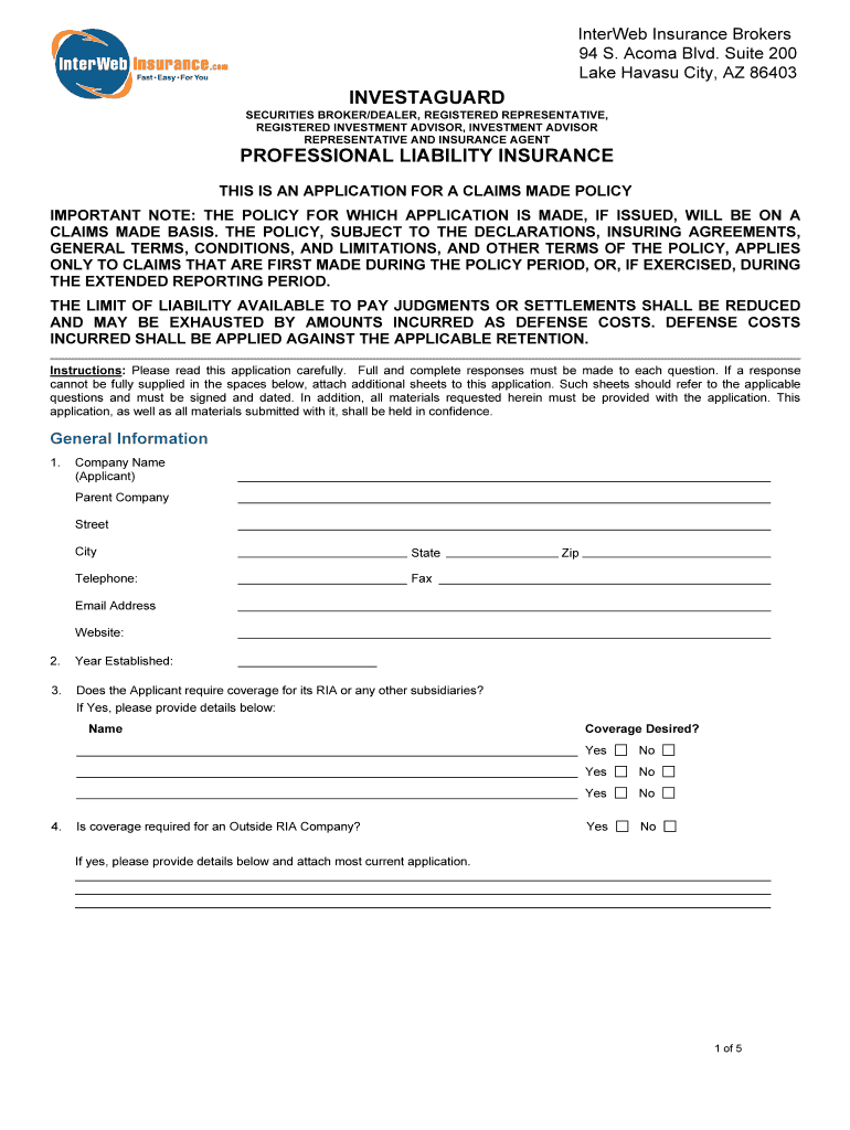 Get the free Defender Plus - InterWeb Insurance Home Page E&O Insurance ...