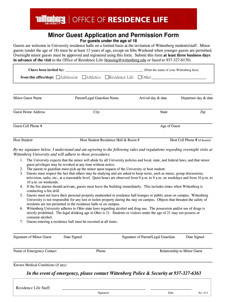Get the free Guests Under 21 All minors under age 18 must travel with all ... - www5 wittenberg