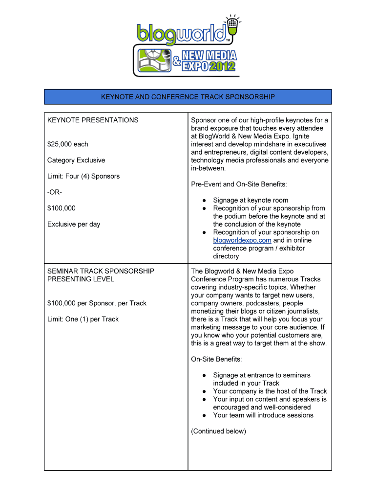 Fill out your sponsors - blogworld ampamp online with pdfFiller!