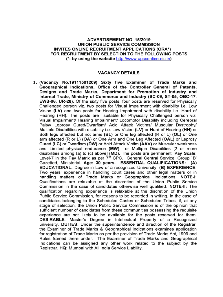 FOR RECRUITMENT BY SELECTION TO THE FOLLOWING POSTS