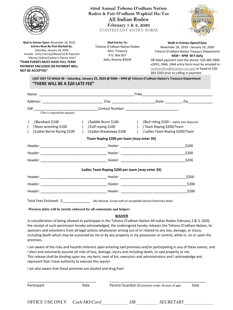 How to fill out tohono oodham nation rodeo