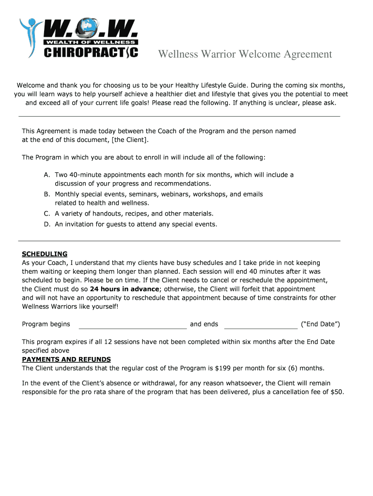 Fill out your wellness warrior welcome agreement online with pdfFiller!