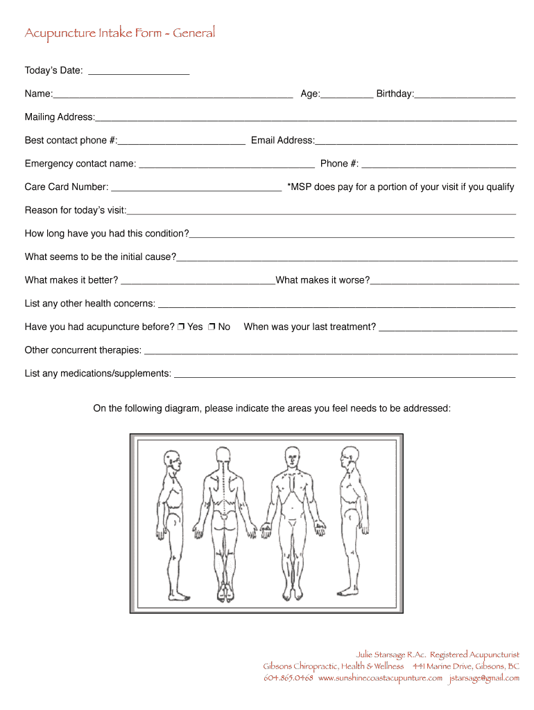 Get the free Acupuncture Intake Form - General - Vortala