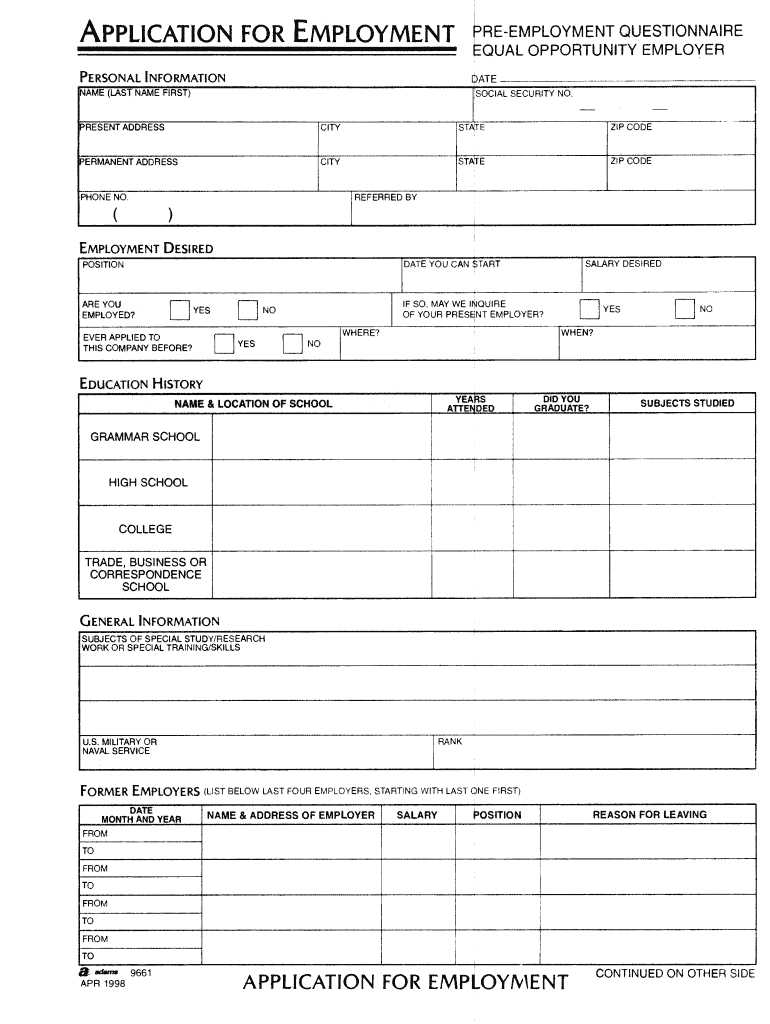 Name: Date: Telephone: Address: 1) What is your knowledge of Chiropractic?2) What is the most important thing you are looking for in a job? 3) Why would you like to work here? 4) How long do you plan