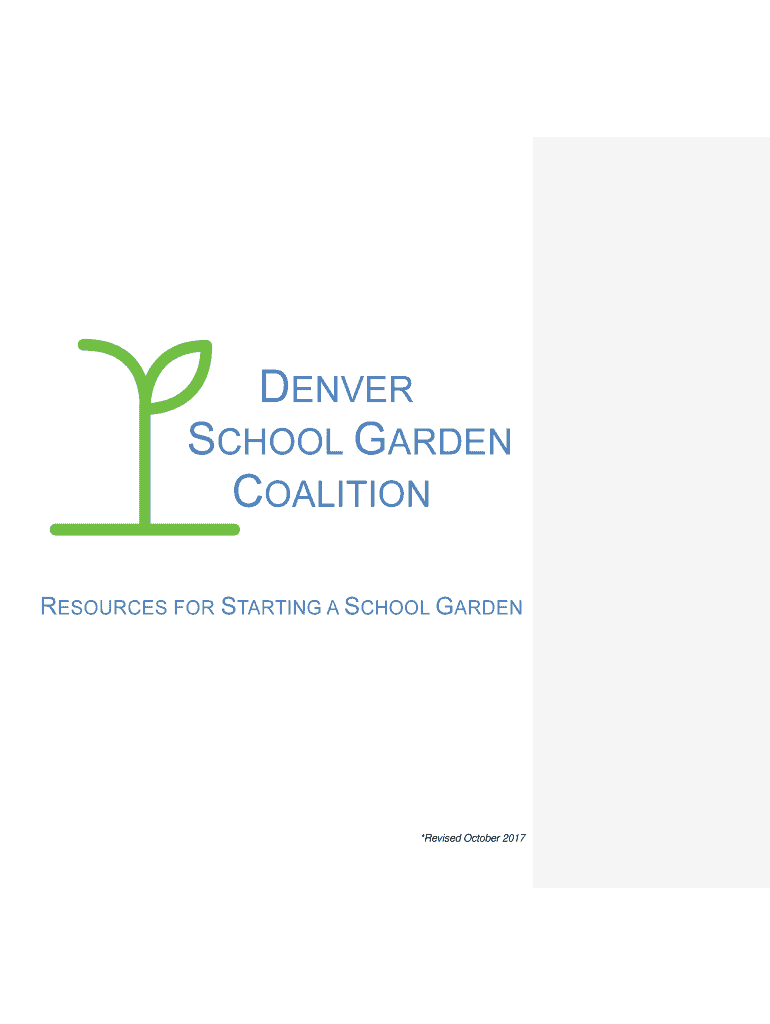 RESOURCES FOR STARTING A SCHOOL GARDEN×Revised October 2017This guide, written by the members of the Denver School Garden Coalition, is