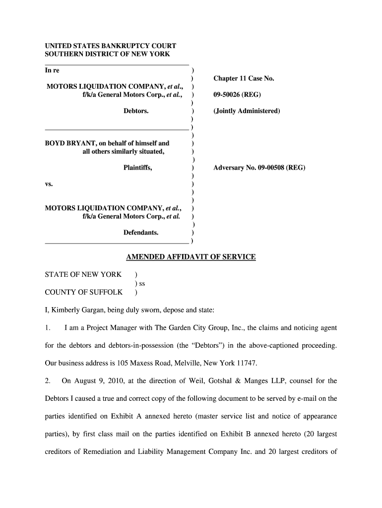 UNITED STATES BANKRUPTCY COURT SOUTHERN DISTRICT OF NEW YORK In re)) MOTORS LIQUIDATION COMPANY, et al.,) f/k/a General Motors Corp., et al.,) ) Debtors. )))) BOYD BRYANT, on behalf of himself and)