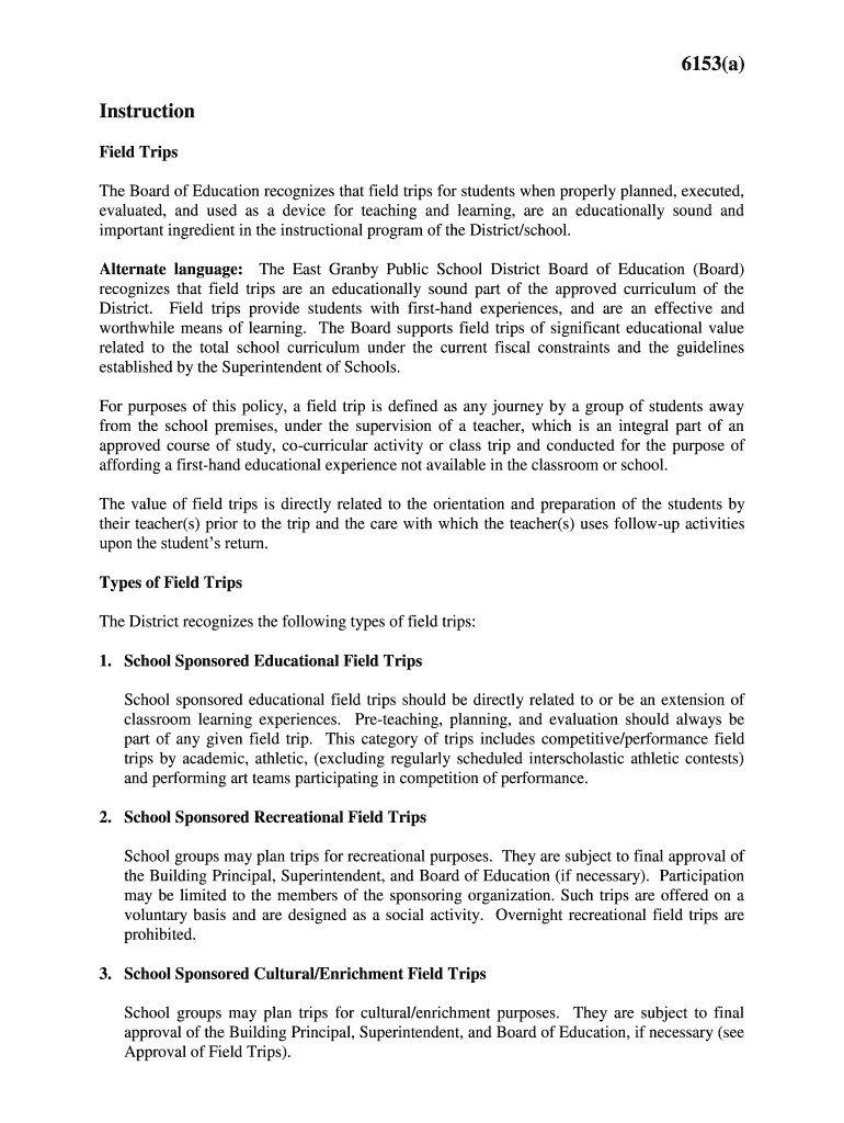 The Board of Education recognizes that field trips for students when properly planned, executed,