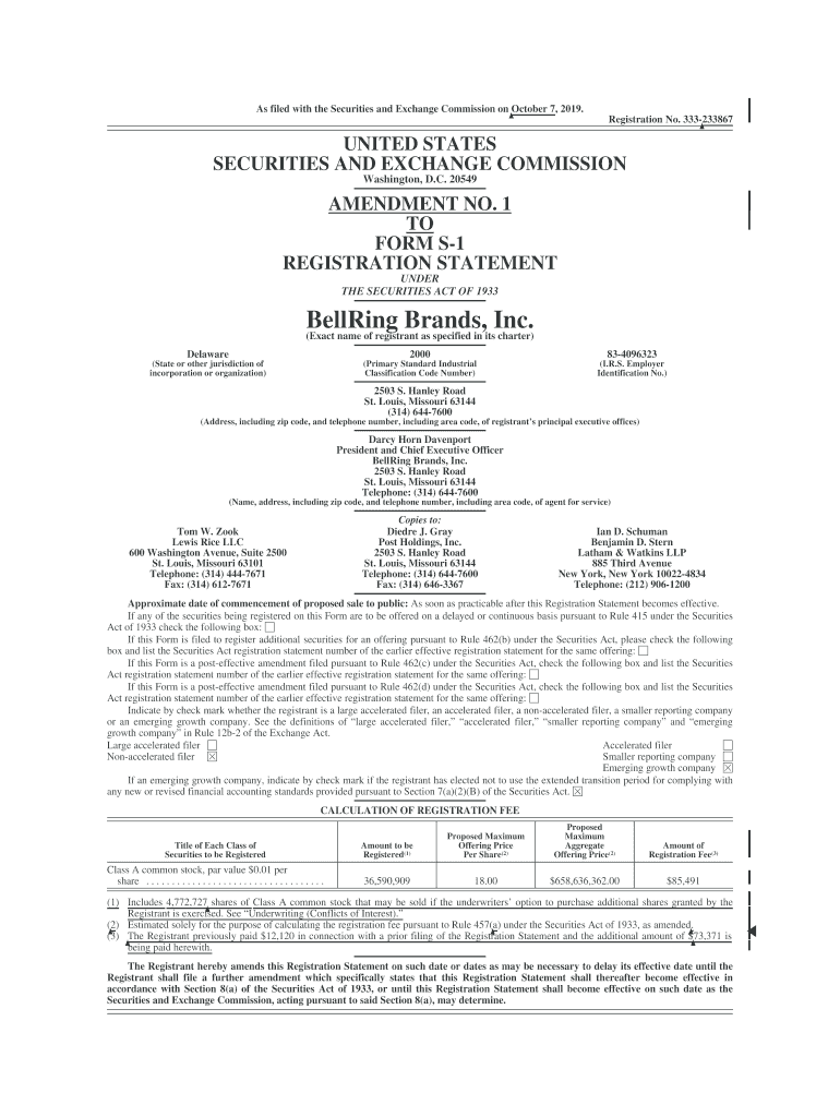 As filed with the Securities and Exchange Commission on October 7, 2019.