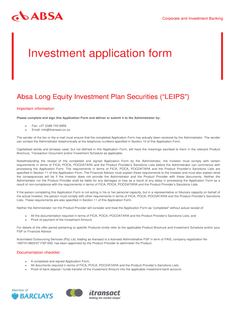 Corporate and Investment BankingInvestment application formats Long Equity Investment Plan Securities (LIPS) Important information: Please complete and sign this Application Form and deliver or submit