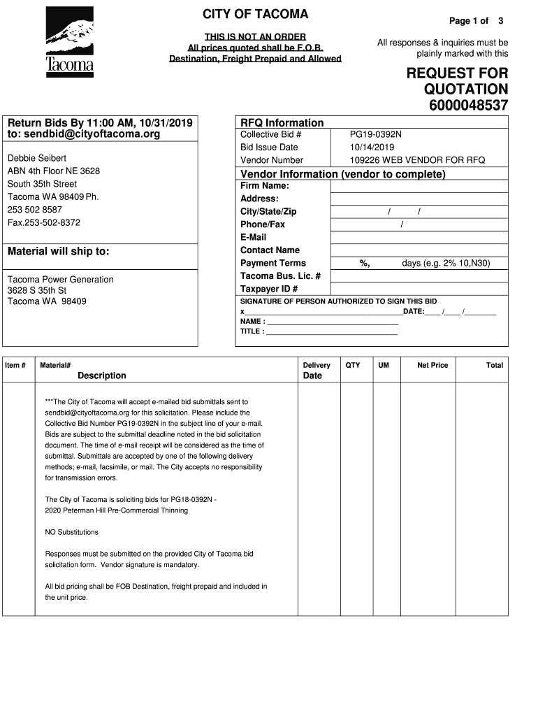 Get the free Online specification no - City of Tacoma Fax Email Print ...