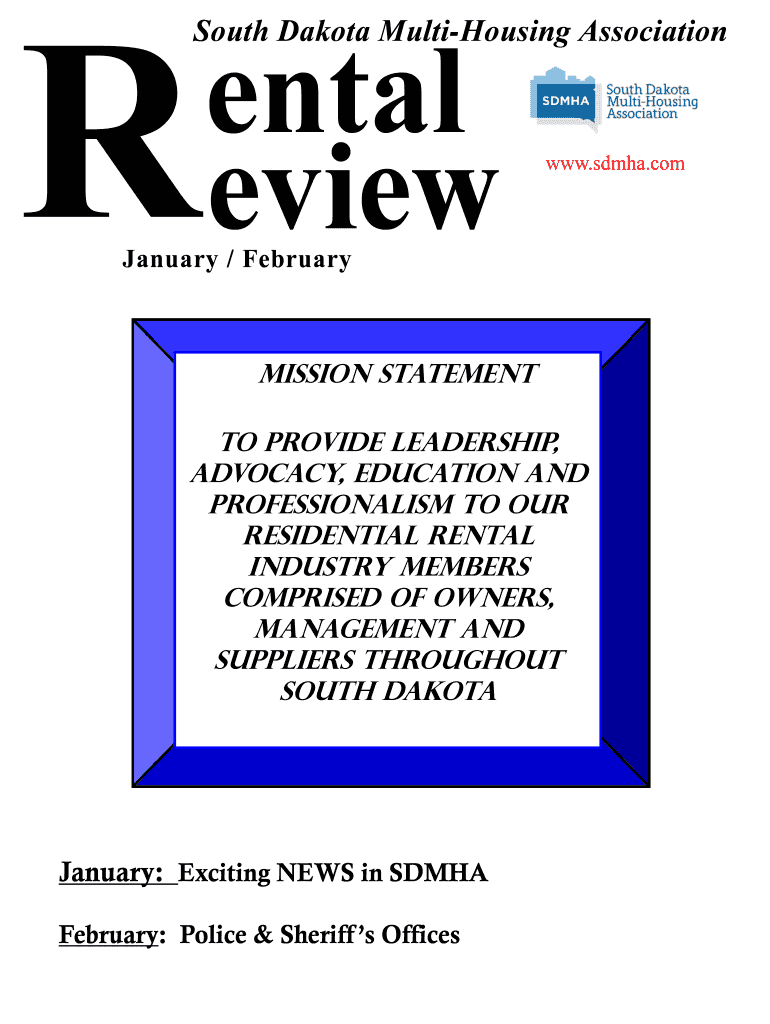 South Dakota MultiHousing Associationental eviewwww.Samoa.com January / FebruaryMISSION STATEMENT TO PROVIDE LEADERSHIP, ADVOCACY, EDUCATION AND PROFESSIONALISM TO OUR RESIDENTIAL RENTAL INDUSTRY