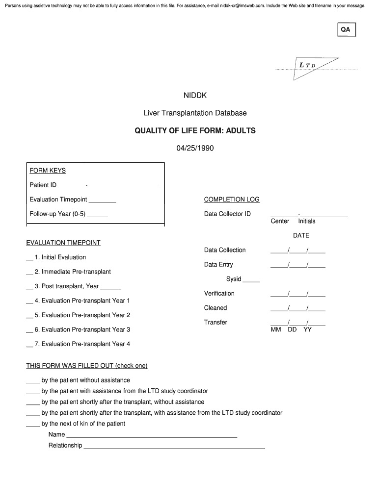 Get the free NIDDK Liver Transplantation Database QUALITY OF LIFE FORM ...
