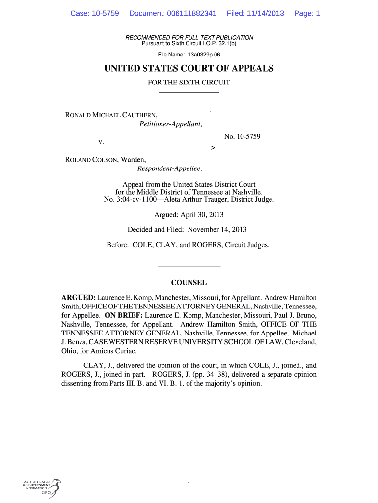 Case: 105759Document: 006111882341Filed: 11/14/2013Page: 1RECOMMENDED FOR FULLEST PUBLICATION Pursuant to Sixth Circuit I.O.P. 32.1(b) File Name: 13a0329p.06UNITED STATES COURT OF APPEALS FOR THE