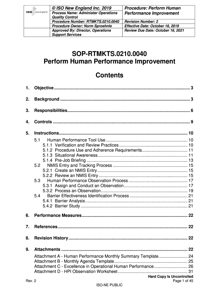 ISO New England Inc. 2019 Process Name: Administer Operations Quality Control Procedure Number: RTM KTS.0210.0040 Procedure Owner: Norm Sproehnle Approved By: Director, Operations Support ServicesProcedure: