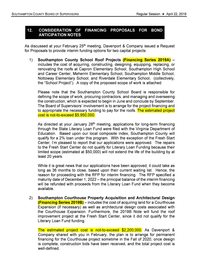 Get the free No. 12 - Financing Proposals for Bond Anticipation Notes