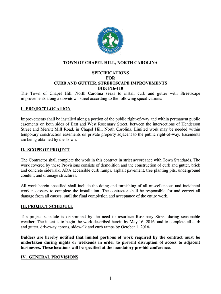 The Town of Chapel Hill, North Carolina seeks to install curb and gutter with Streets cape