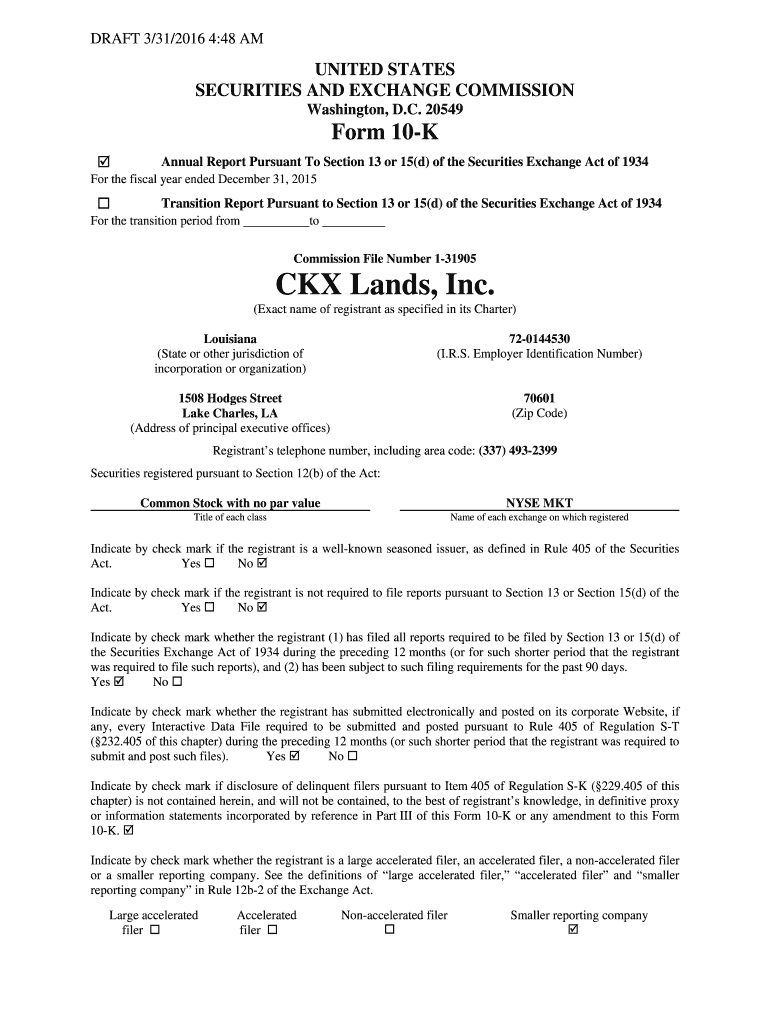 DRAFT 3/31/2016 4:48 UNITED STATES SECURITIES AND EXCHANGE COMMISSION Washington, D.C. 20549Form 10K Annual Report Pursuant To Section 13 or 15(d) of the Securities Exchange Act of 1934 For the fiscal