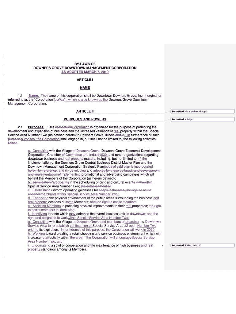 Get the free BY-LAWS OF - Downtown Downers Grove