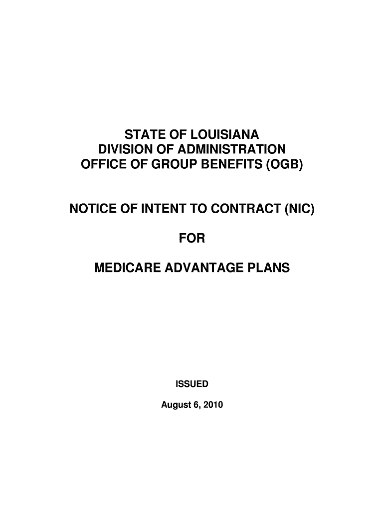 Get the free (ogb) notice of intent to contract (nic) for medicare adv