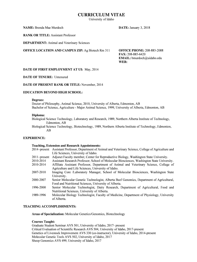 NAME: Brenda Mae MurdochDATE: January 3, 2018RANK OR TITLE: Assistant Professor