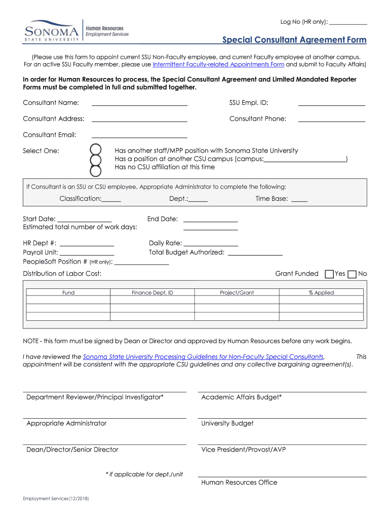 Log No (HR only):Special Consultant Agreement Form