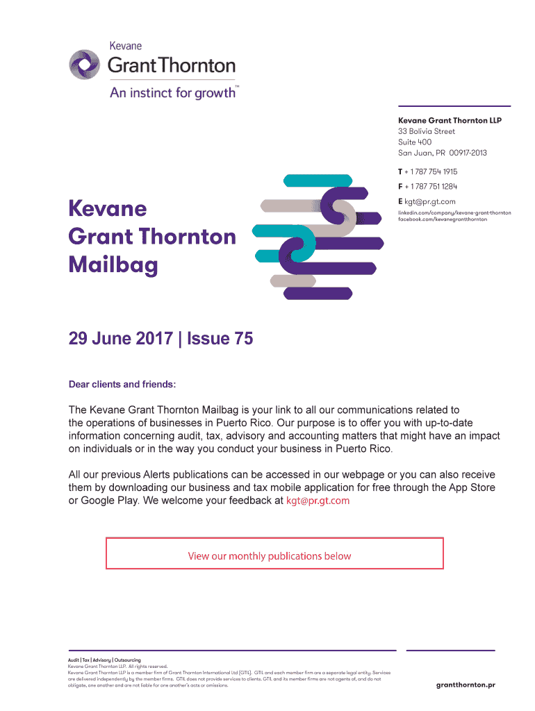 Keane Grant Thornton LLP 33 Bolivia Street Suite 400 San Juan, PR 009172013 T + 1 787 754 1915 F + 1 787 751 1284Kevane Grant Thornton Mailbag kg pr.gt.com linkedin.com/company/kevanegrantthornton