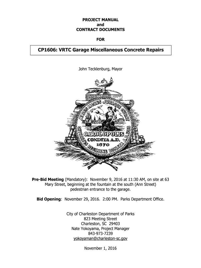 FORCP1606: RTC Garage Miscellaneous Concrete Repairs John Mecklenburg, MayorPreBid Meeting (Mandatory): November 9, 2016, at 11:30 AM, on site at 63