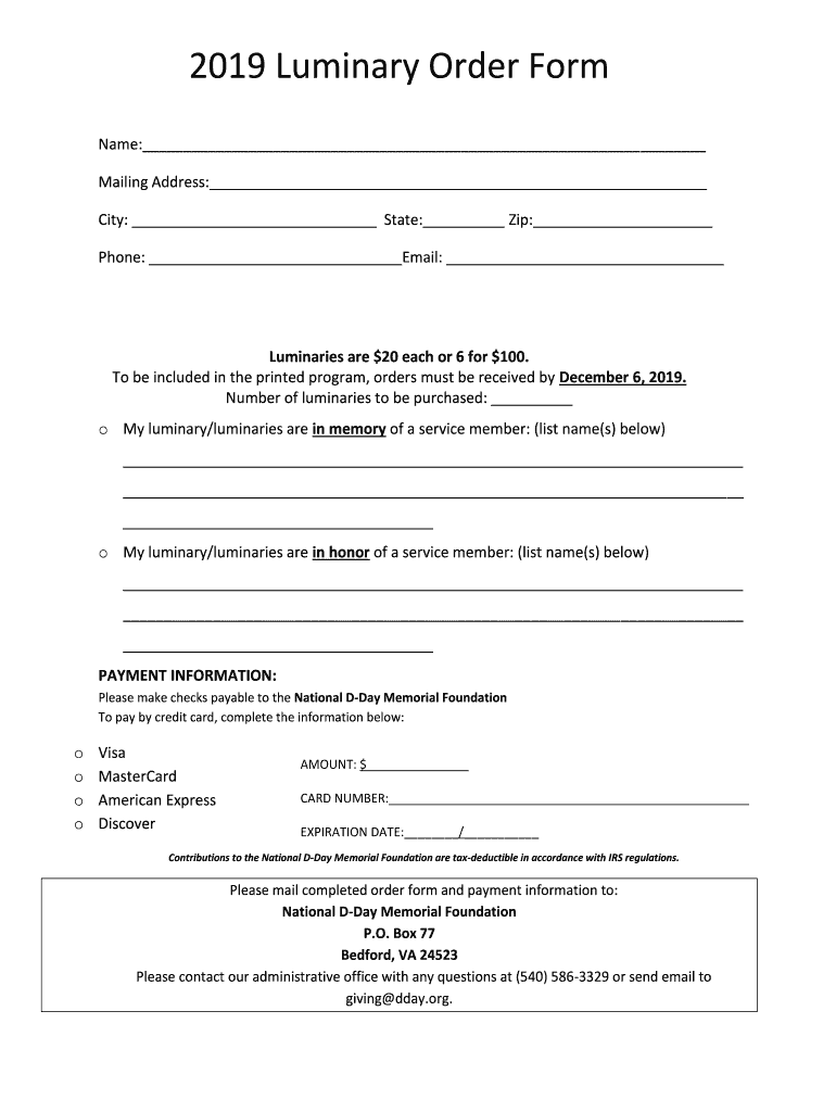 Fill out your luminary order form online with pdfFiller!