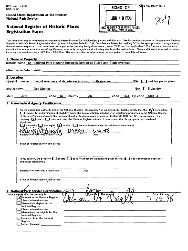 Get the free National Register of Historic Places Registration Form JUN i 9 1998