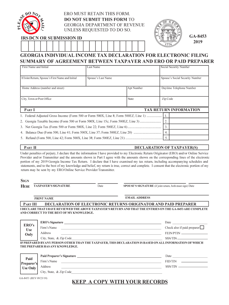 2019IRS DCN OR SUBMISSION GEORGIA INDIVIDUAL INCOME TAX DECLARATION