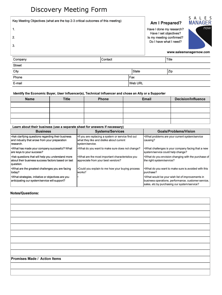 Get the free Sales Discovery Meeting Form.sdr - Sales Manager Now