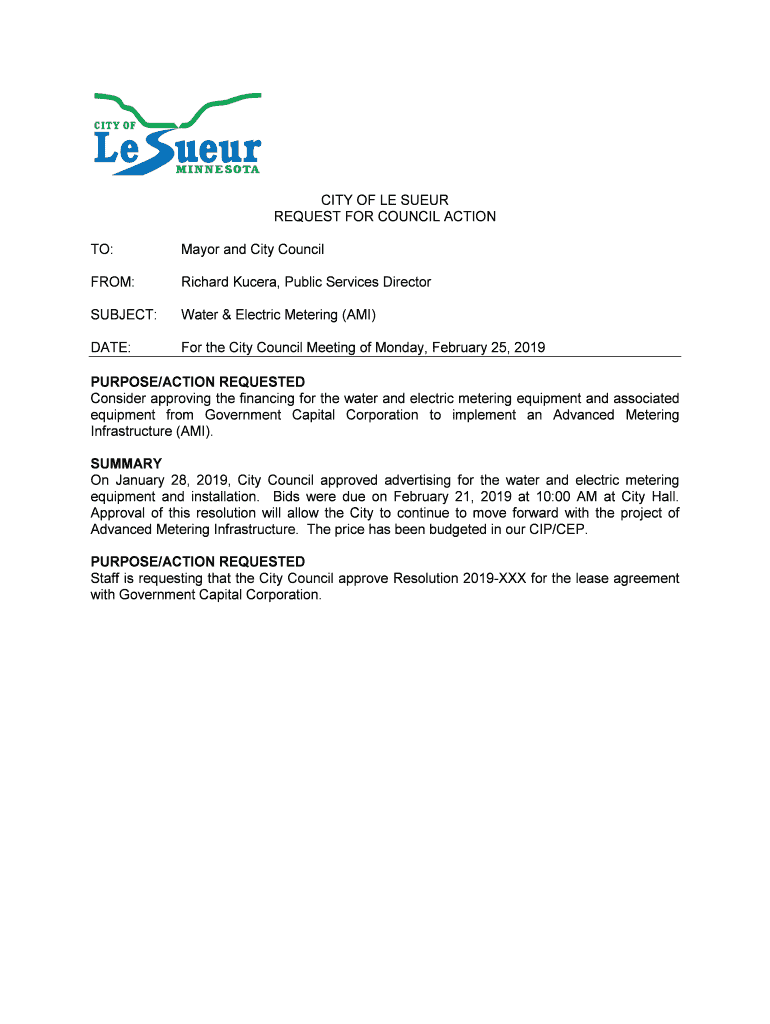 Get the free CITY OF LE SUEUR REQUEST FOR COUNCIL ACTION TO: Mayor and ...