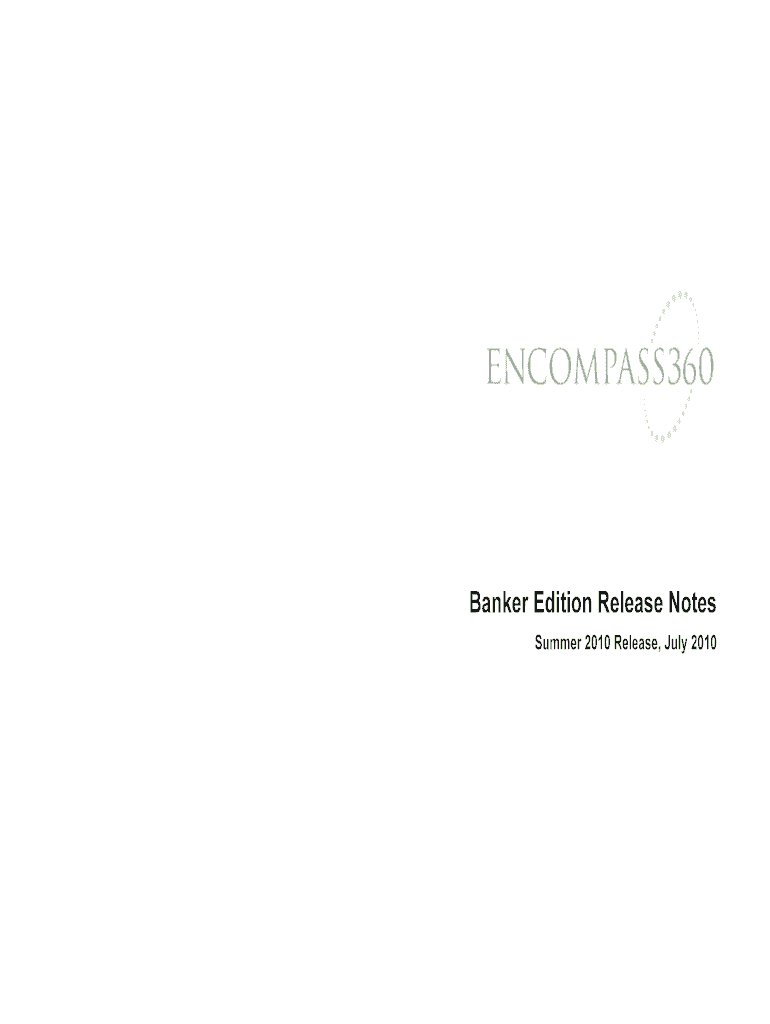 Banker Edition Release Notes Summer 2010 Release, July 2010Copyright Statement 2010 Ellie Mae, Inc. All rights reserved. Ellie Mae, Encompass (patent No. 7,444,302) is a registered trademark and Encompass360,