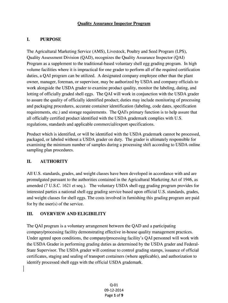 Quality Assurance Inspector Program. Purpose Agricultural Marketing Service (AMS), Livestock, Poultry and Seed Program (LPS),