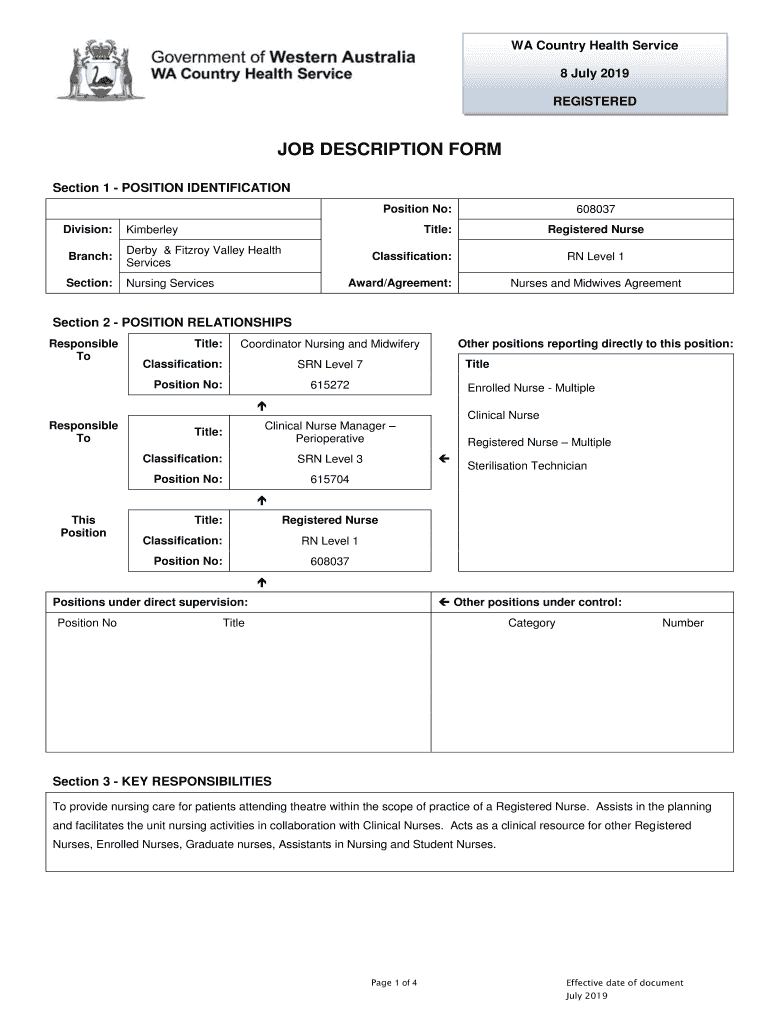 Get the free registered nurse ch608037 rn level 1 july 2019.pdf - Jobs WA