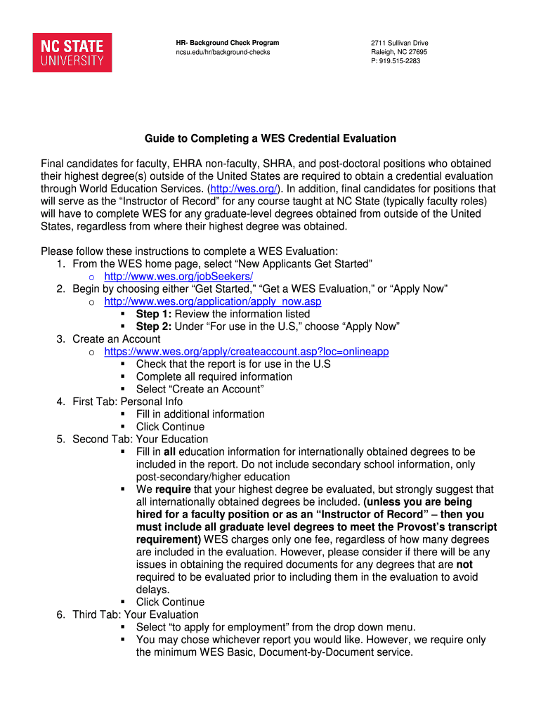 Get the free Instructions to Request WES Exception to Start If there is an ... - benefits hr ncsu