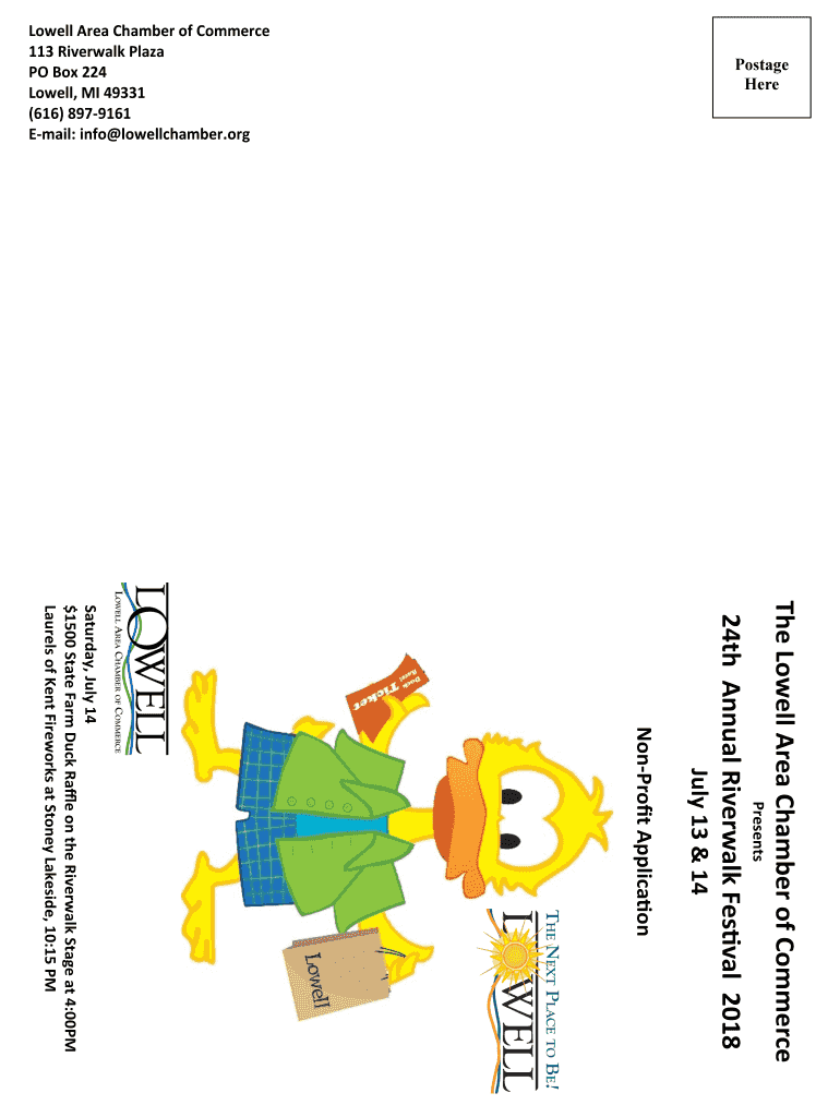 Postage Here Lowell Area Chamber of Commerce 113 River walk Plaza PO Box 224 Lowell, MI 49331 (616) 8979161 Email: info lowellchamber. Writhe Lowell Area Chamber of Commerce Presents24th Annual River